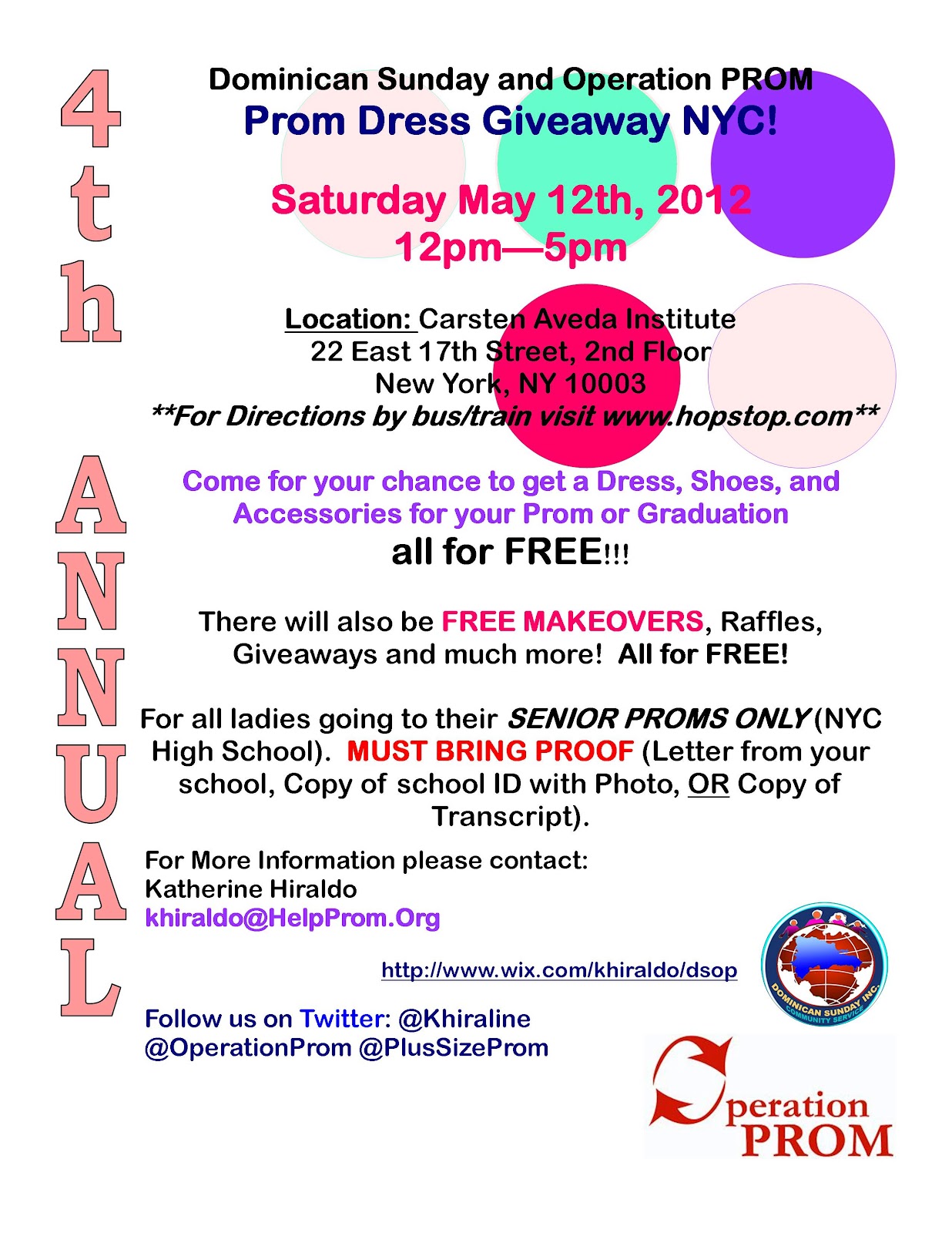 For ladies going to their SENIOR PROMS ONLY (NYC High School). MUST BRING PROOF: Letter from your school, OR Copy of School ID with Photo, OR Copy of Transcript.